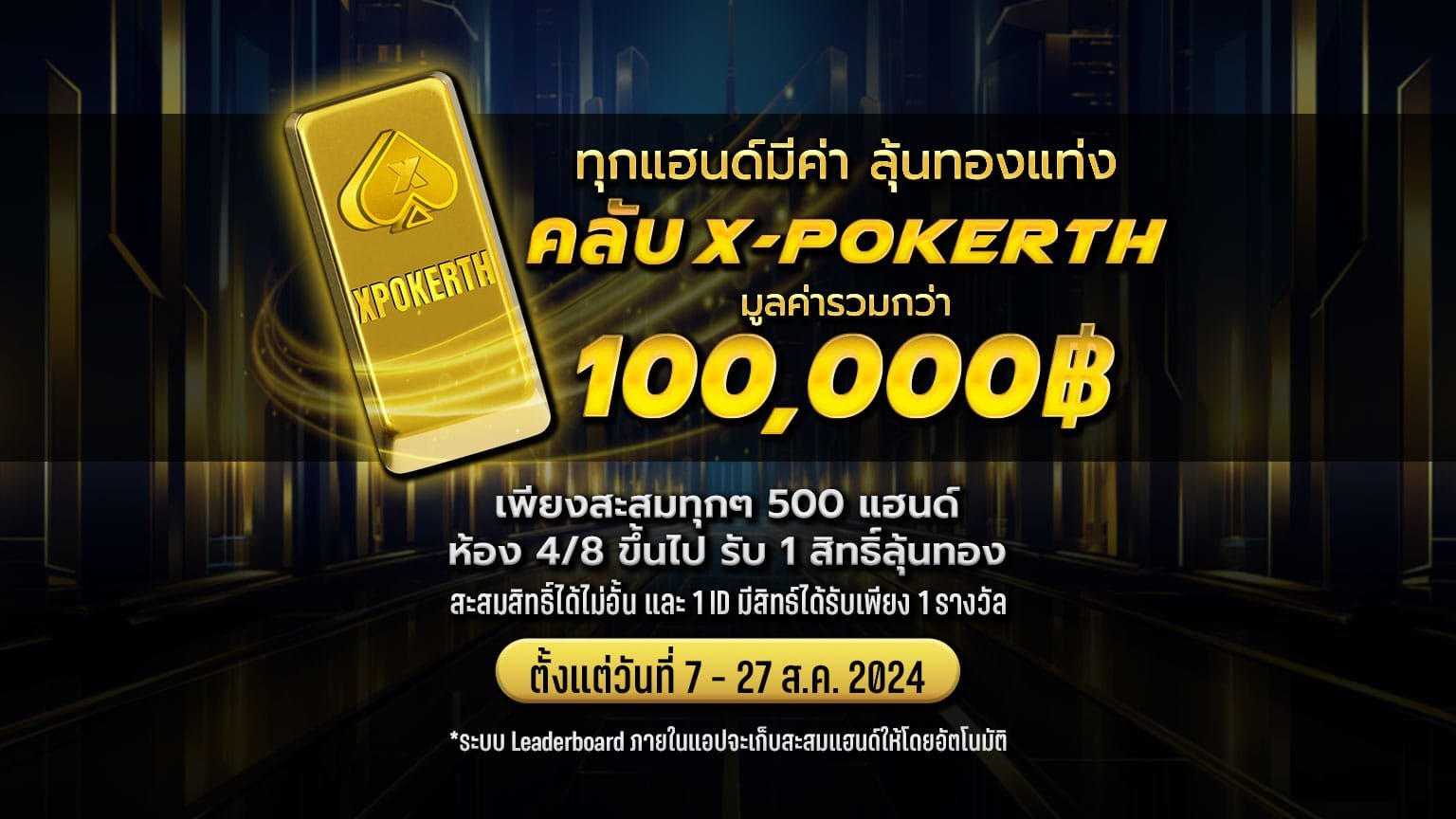 ทุกแฮนด์มีค่า ลุ้นทองแท่ง คลับ X-POKERTH
