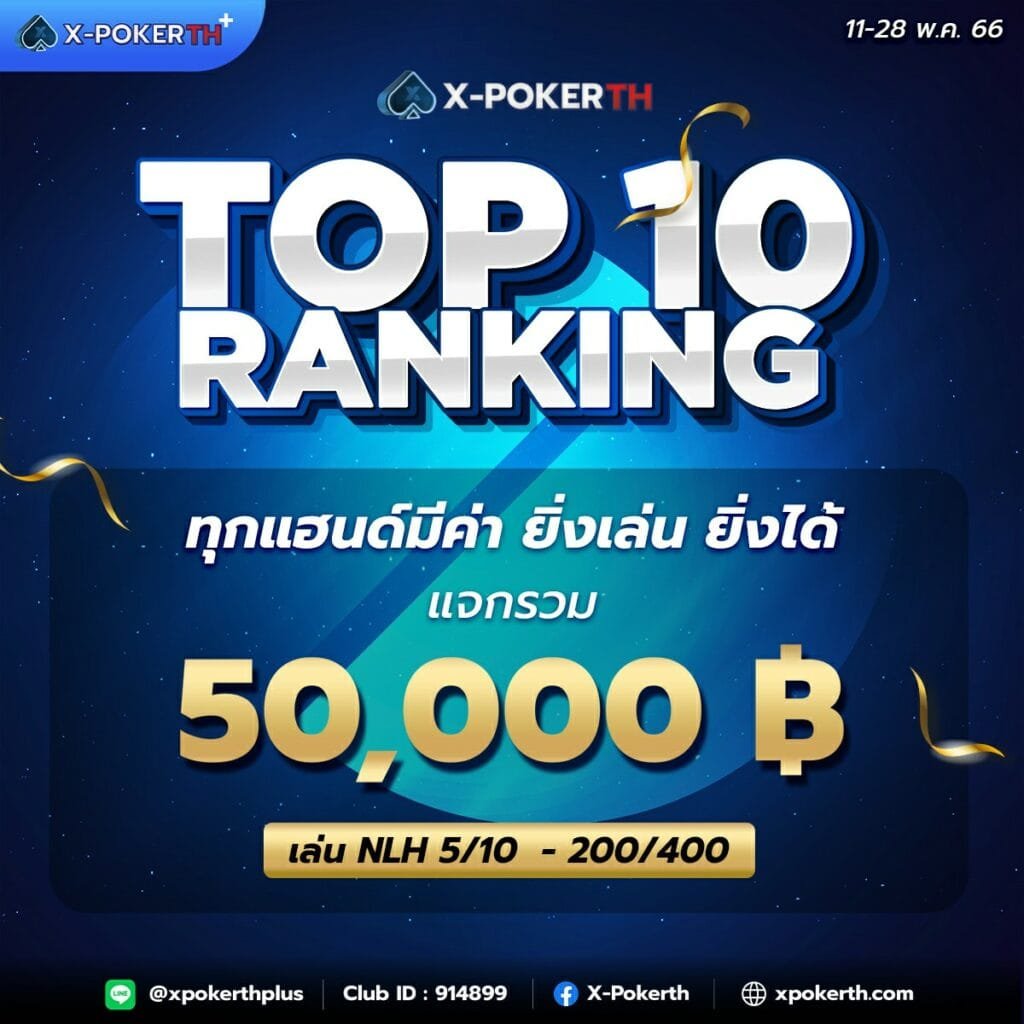 ” X-POKERTH+” กับกิจกรรม TOP 10 RANKING
