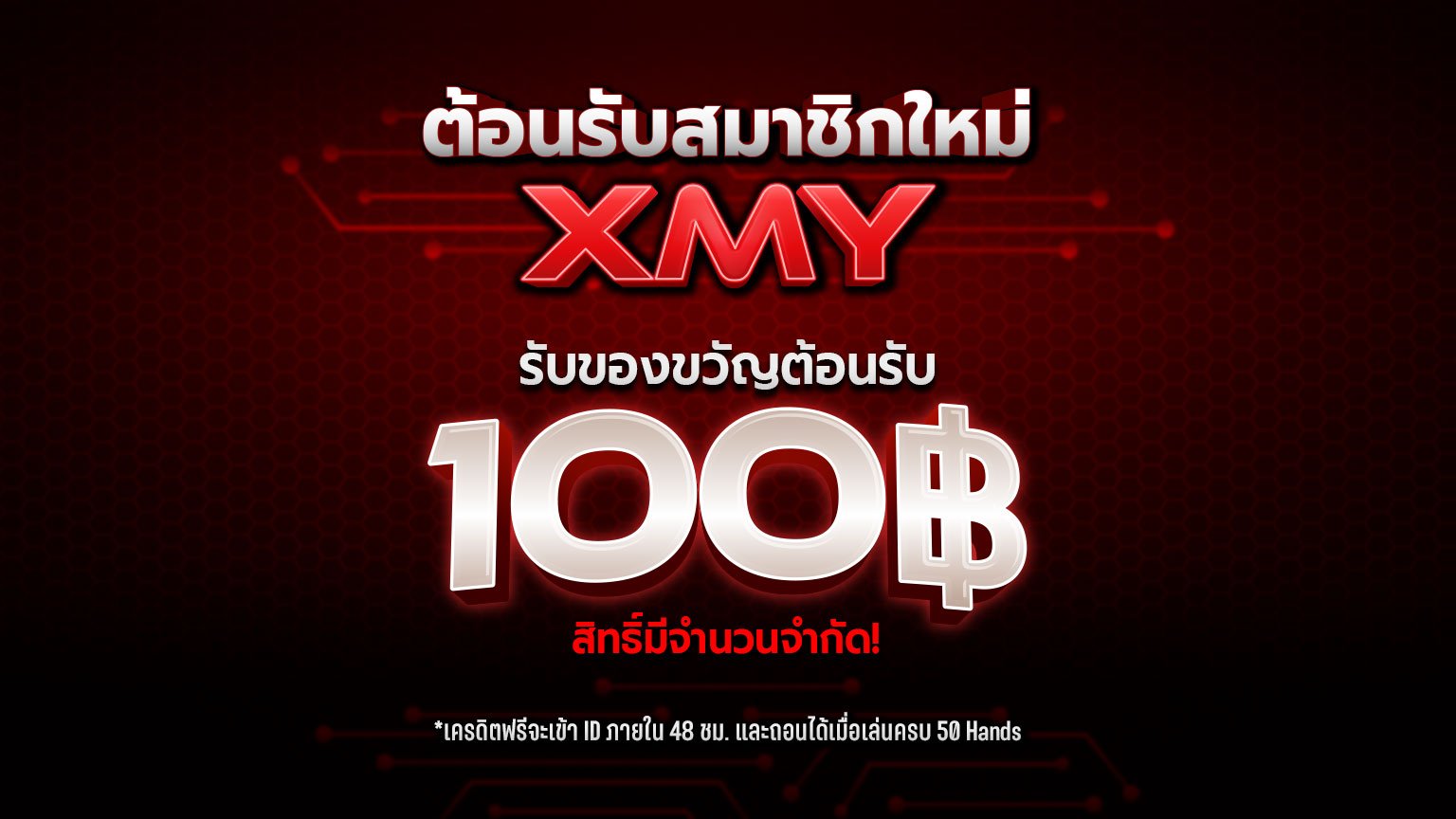 – เครดิตฟรี 100 บาท ถอนได้เมื่อเล่นครบ 50 Hands
