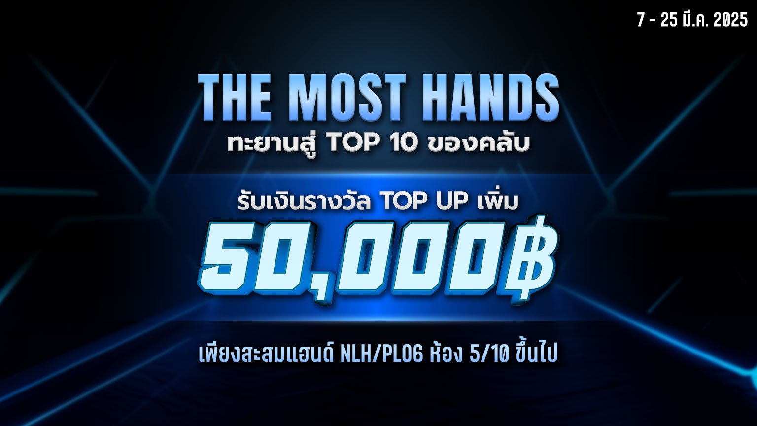 เพียงสะสมแฮนด์ NLH/PLO6 ห้อง 5/10 ขึ้นไปแจกเงินรางวัลรวม 50,000 บาท