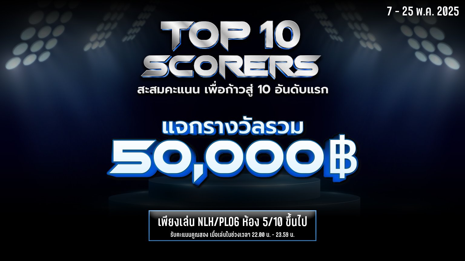 – เงินรางวัลจะได้รับตามมูลค่าที่กำหนด และตามลำดับคะแนนที่ปรากฏบน Leader board วันสุดท้ายของกิจกรรม ผู้เล่นจะได้รับชิปเข้า ID อัตโนมัติภายในวันที่ 29 พ.ค. 2025