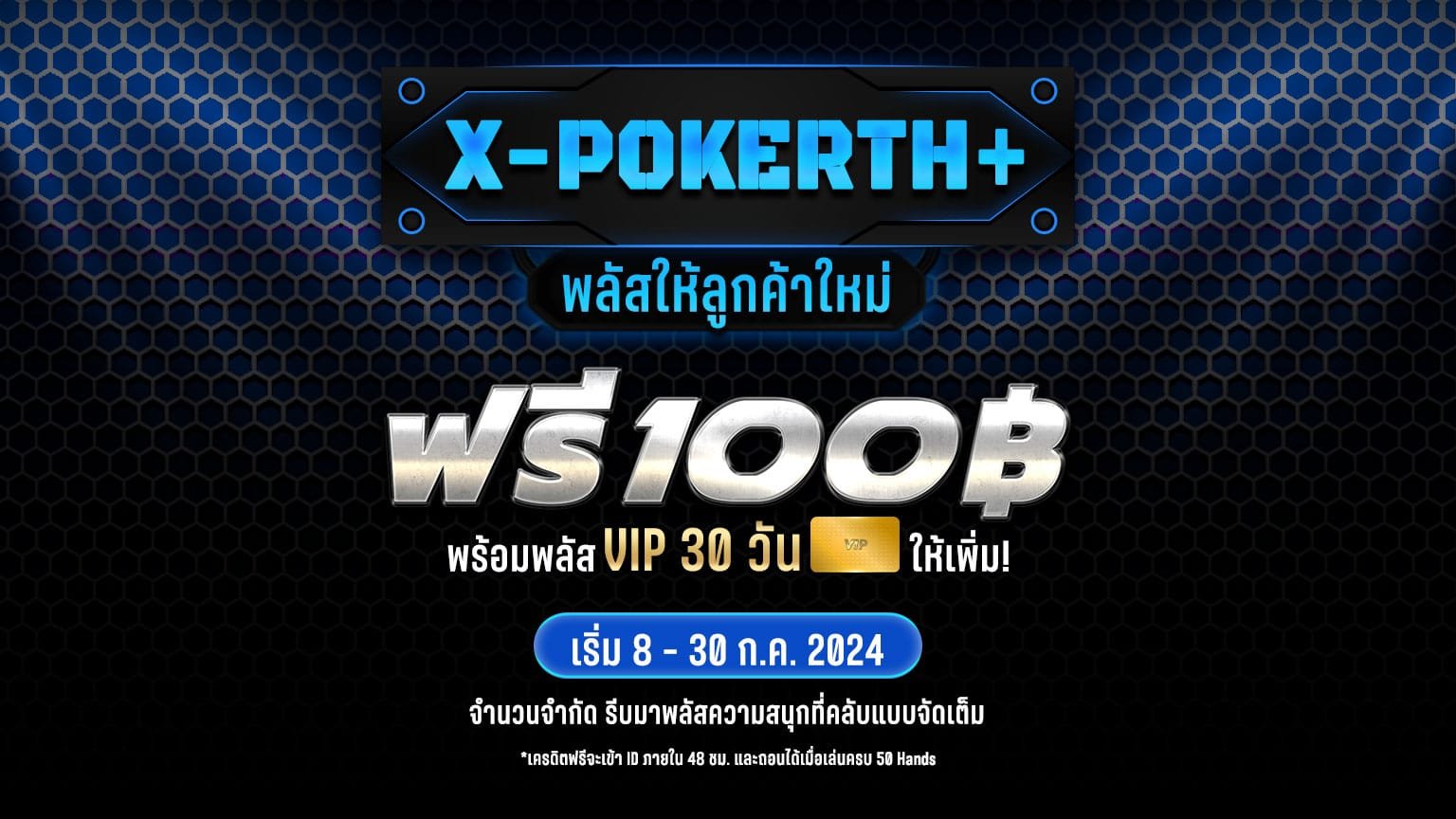 X-POKERTH+ พลัสให้ลูกค้าใหม่ไปเลยฟรี ๆ 100 บาท