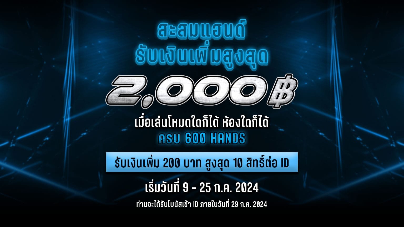 ที่ X-POKERTH เพียงสะสมแฮนด์ พิเศษรับเงินเพิ่มสูงสุด 2,000 บาท 🎁